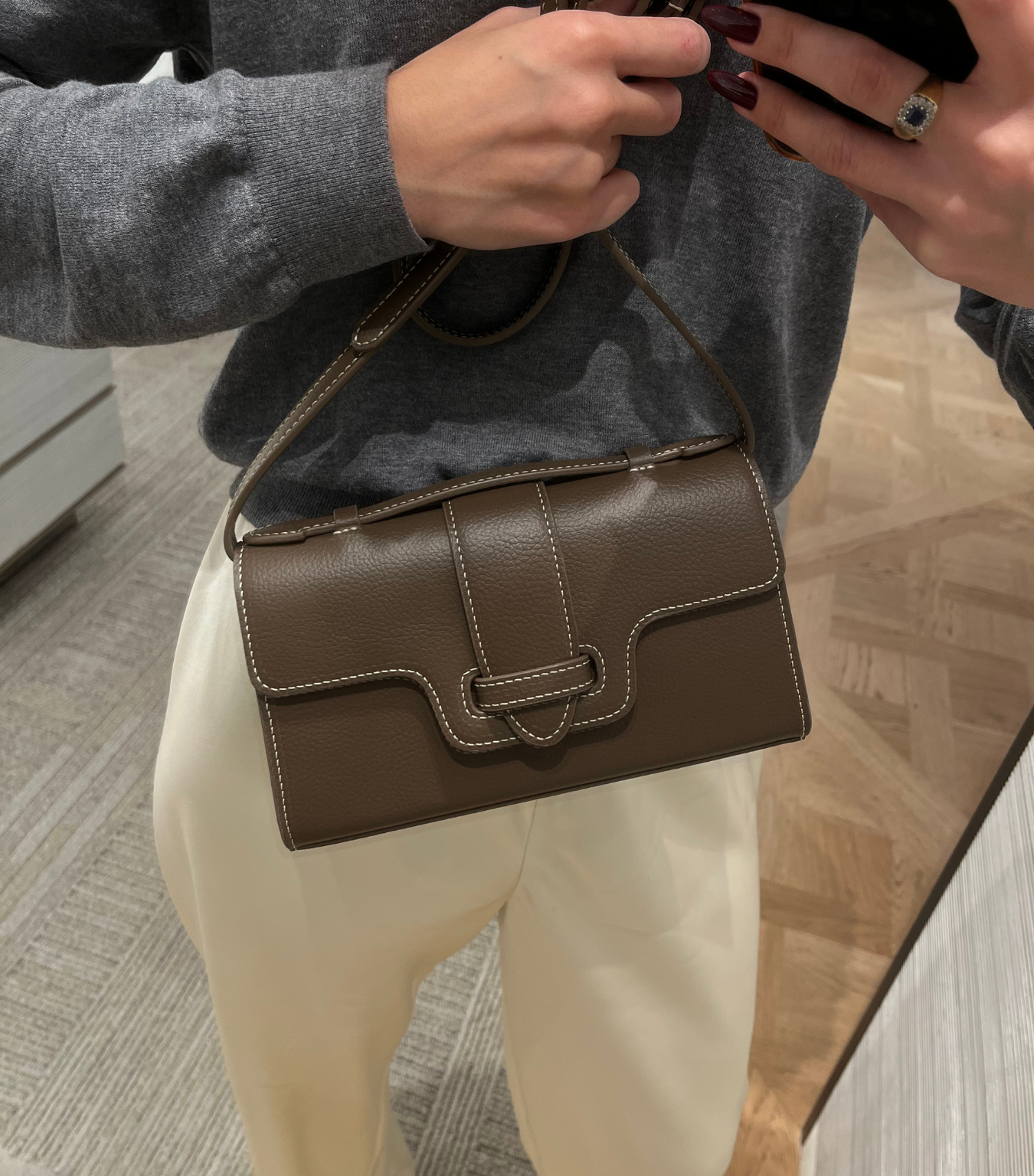I ultimately ended up choosing the Caroline Bag in Oat (pictured above), which is a 90s-inspired minimalist shoulder bag that is perfect for everyday, and elevates every single outfit. Its beautiful, muted cream color goes with everything in my wardrobe.